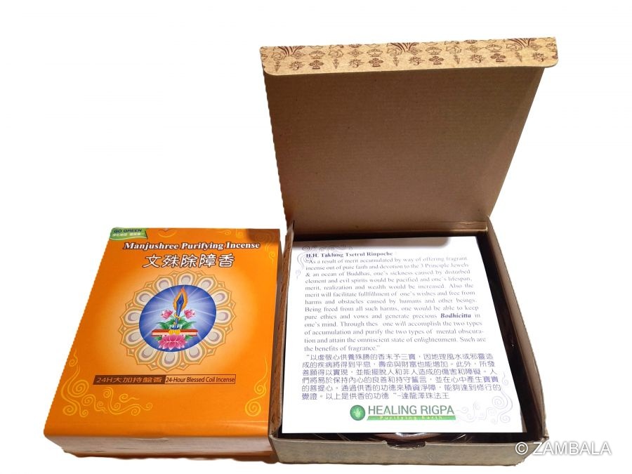 Manjushri Obstacle-Clearing Incense can remove obstacles to enlightenment, allowing us to concentrate our energy, stabilize our mind, and achieve clarity and focus. It is an indispensable aid in learning in any field; it is especially effective for various exams or when making important decisions. The refreshing aroma of Manjushri Wisdom Incense will make you feel as if you are on the summit of Mount Everest.