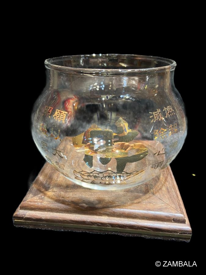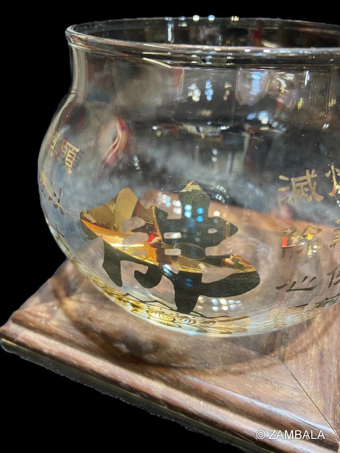Material: Glass, Painted (with Buddhist characters printed on the front)