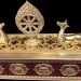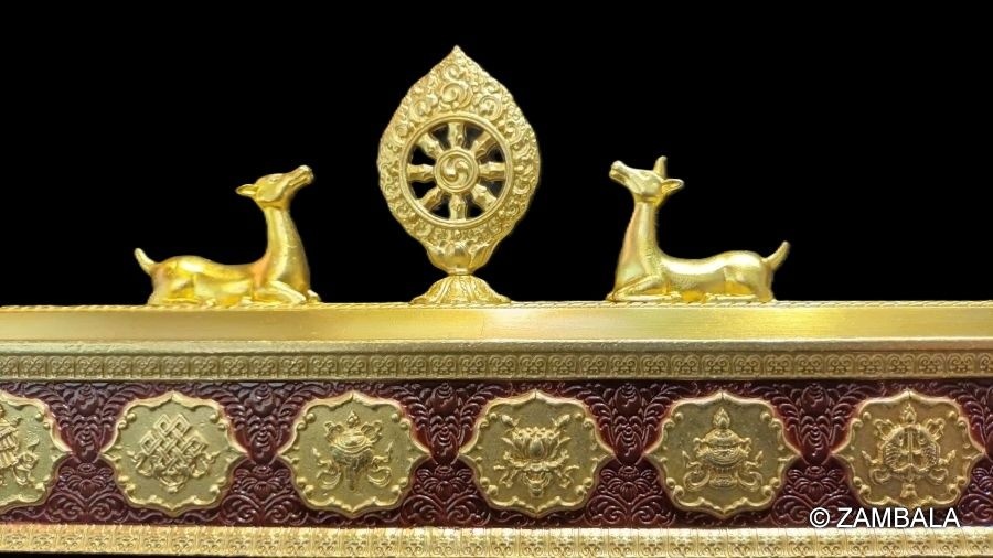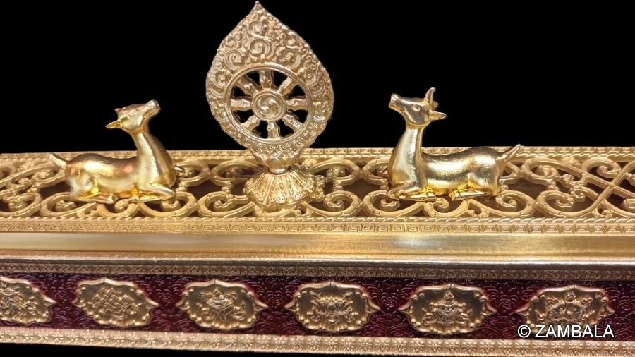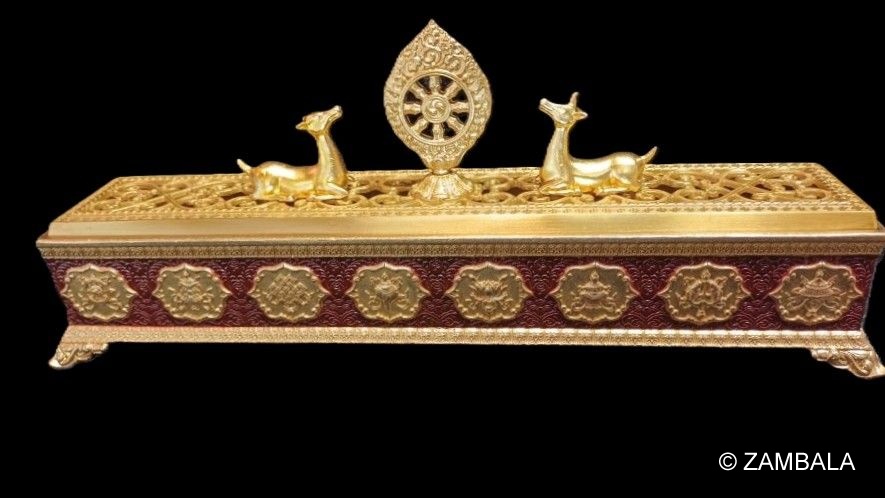 | Material: Gold-plated. Copper (two-piece)Size: 30 cm approx.Narrative:The incense burner of Tibetan Buddhism is not only an important instrument for worshiping Buddhist teachings, but also carries profound cultural and religious significance. Different from the standing incense commonly seen in Chinese Buddhism, Tibetan Buddhism mostly uses **lying incense**, which is to place agarwood or incense sticks horizontally in the incense burner and burn them to achieve the effect of purifying the mind and worshiping Buddha. **Story and symbolism of the incense burner**Incense burners symbolize purity, offerings and blessings in Tibetan Buddhism. Its shapes are varied, and common materials include copper, ceramics and wood products. Among them, copper incense burners are particularly popular because they are stable, durable and solemn. Many Tibetan incense burners are engraved with the **Eight Auspicious Treasures** or the **Six-Character Mantra** (Om Mani Padme Hum) to enhance the merit of the offering. In Tibetan Buddhist practice rituals, burning incense is seen as a way to convey offerings and prayers to the Buddhas and Bodhisattvas. The rising smoke symbolizes the wishes and prayers of the practitioner being carried to a higher spiritual realm. In addition, incense burners are also closely related to the **smoke offering** ceremony, which is a way of practicing to purify the environment, eliminate karma and benefit all living beings by burning offerings. |  |
